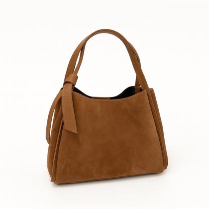 - Wildledertasche mit Ledereinsätzen, mit ästhetischen Linien.