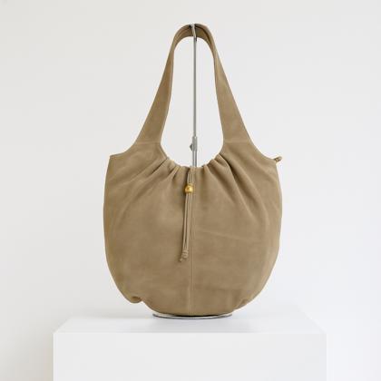 - Ovaler Shopper, mit festen Henkeln, zum Tragen über der Schulter.