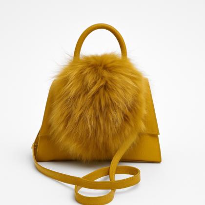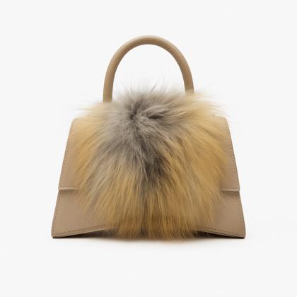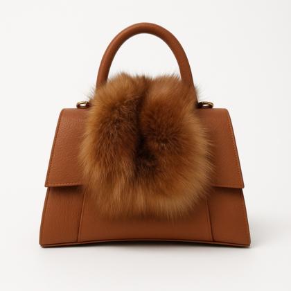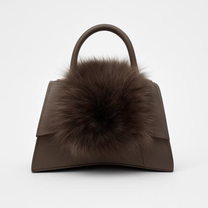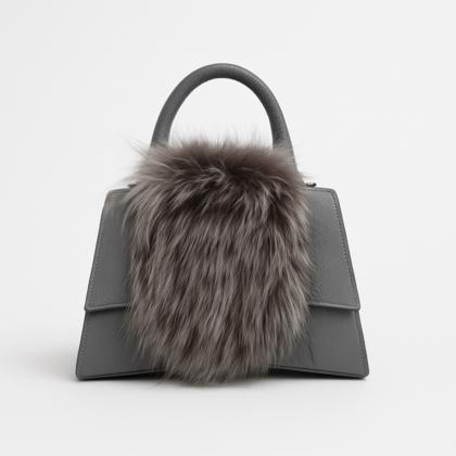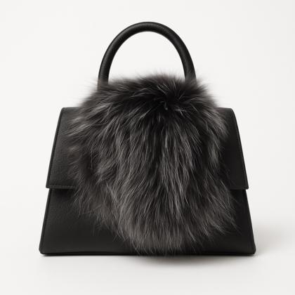 - Rigid leather bag with fur inserts.