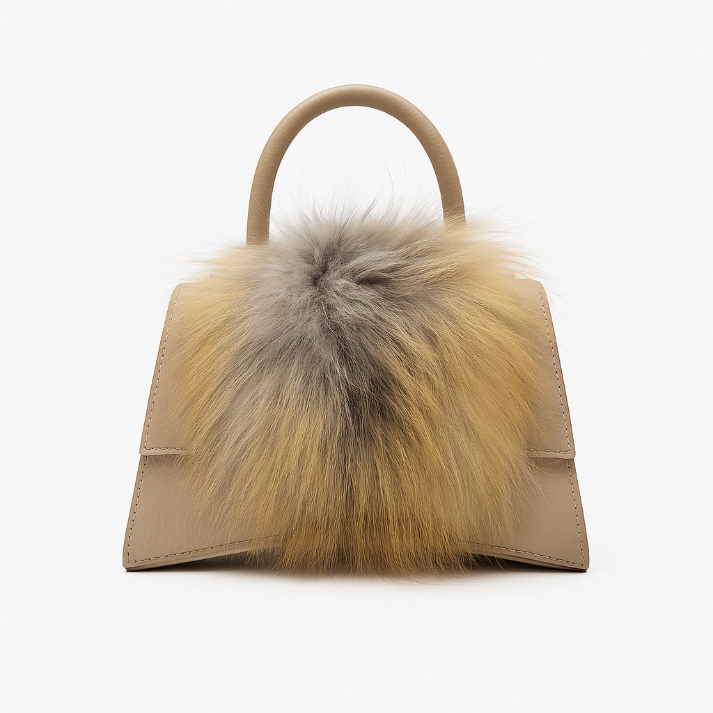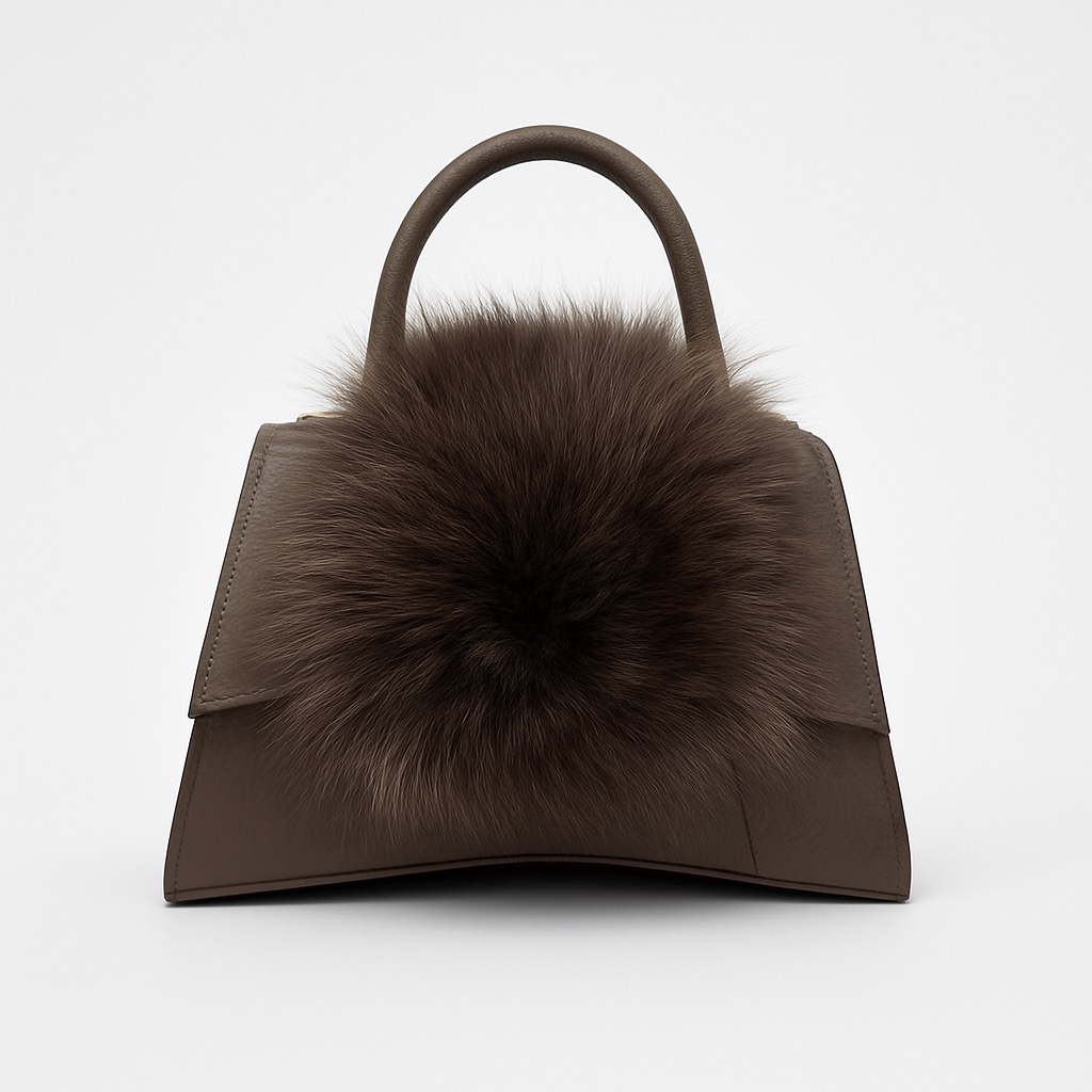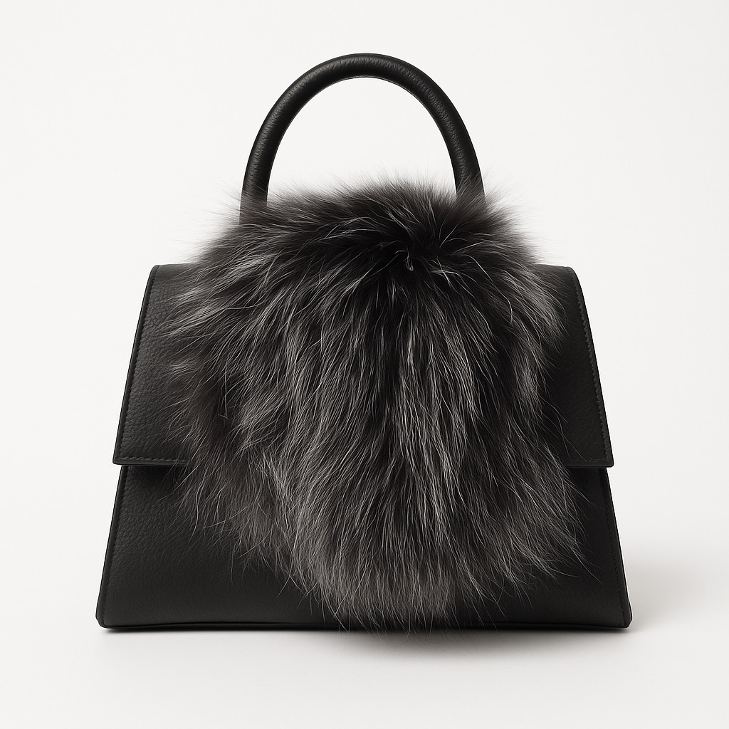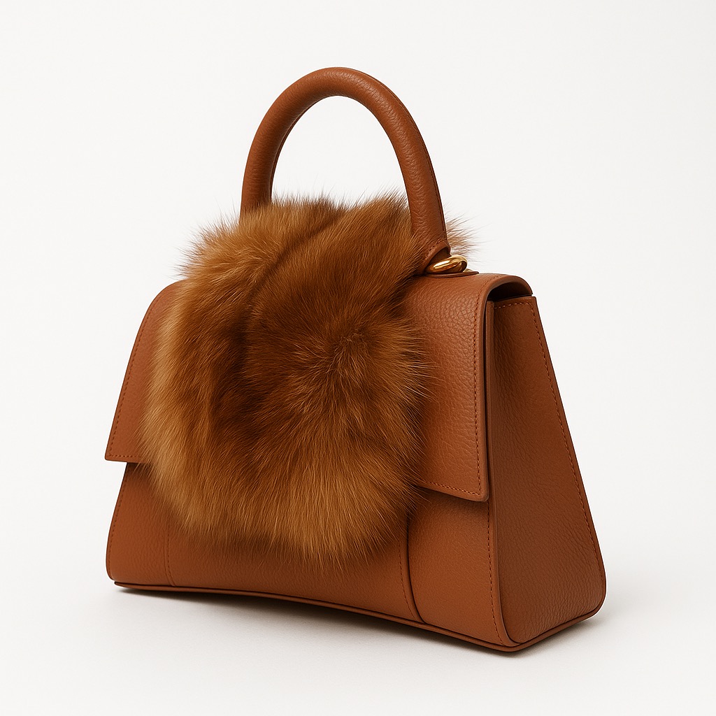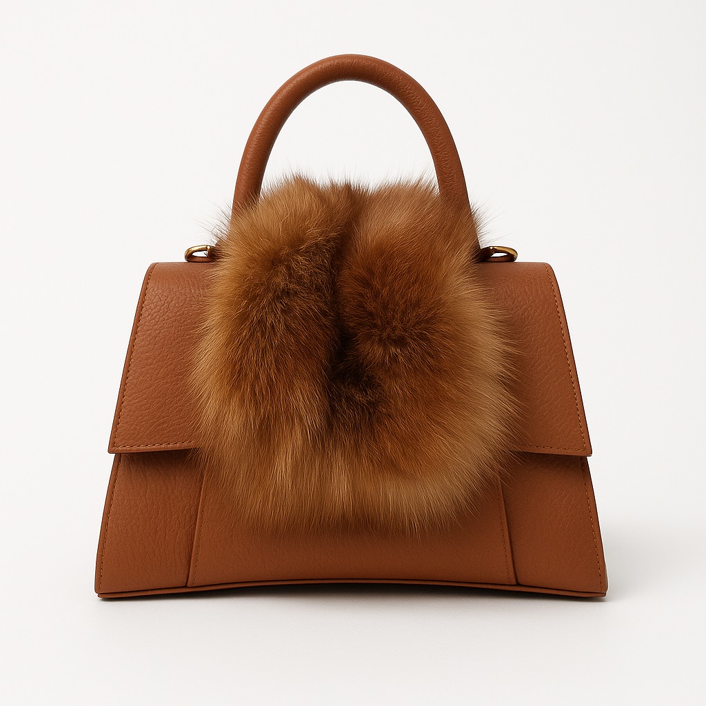 - Rigid leather bag with fur inserts.