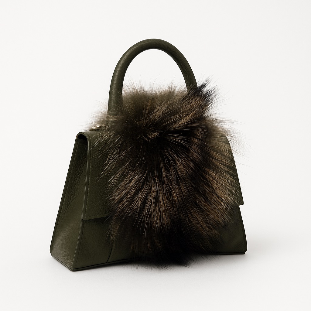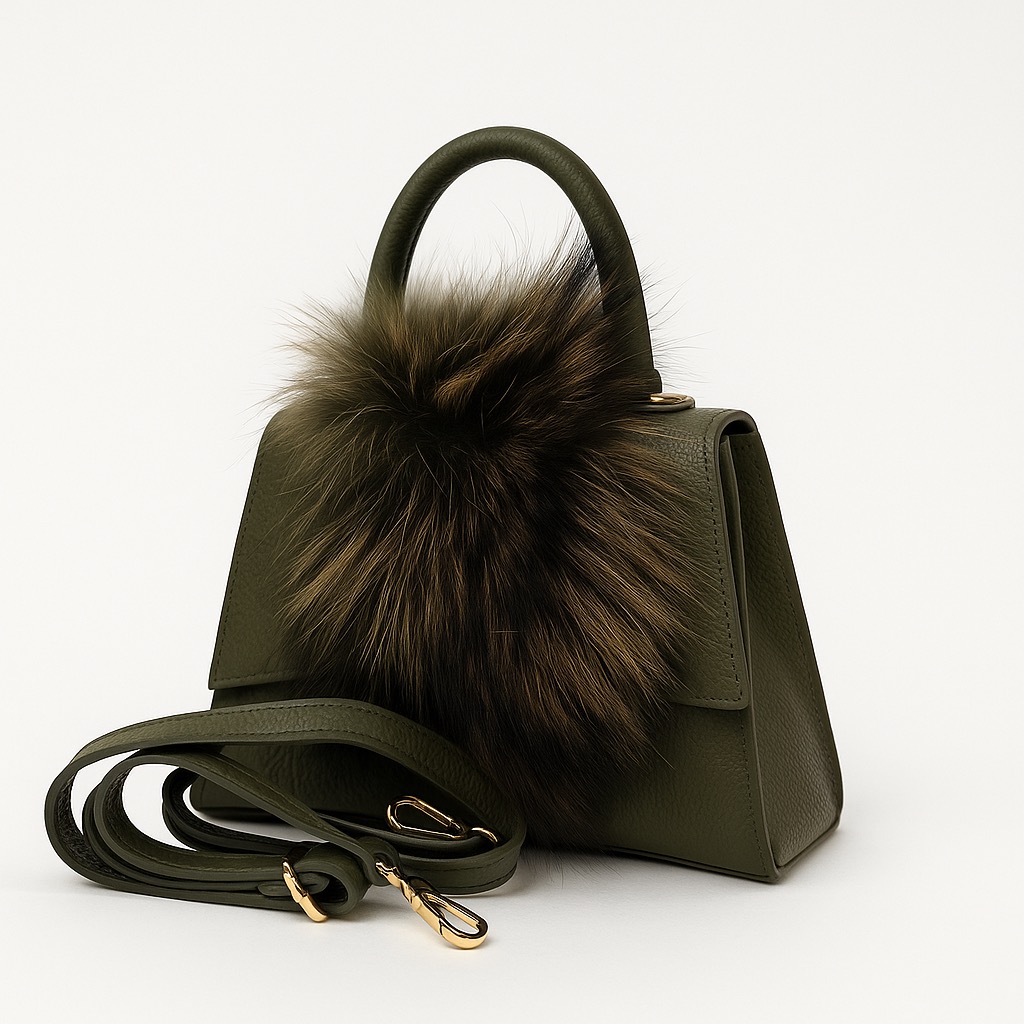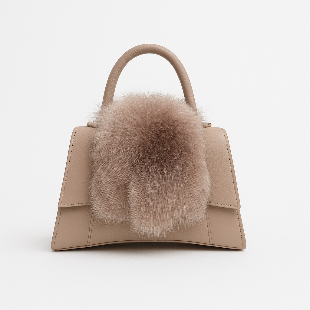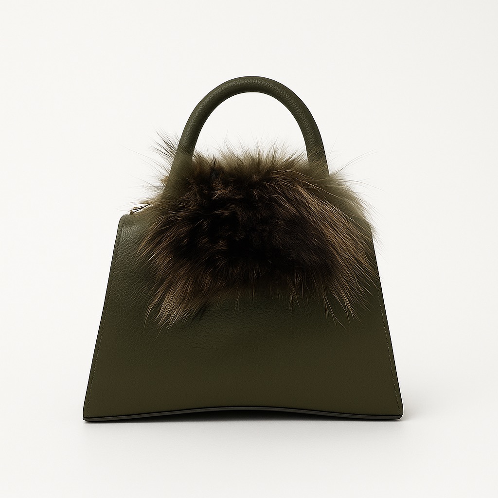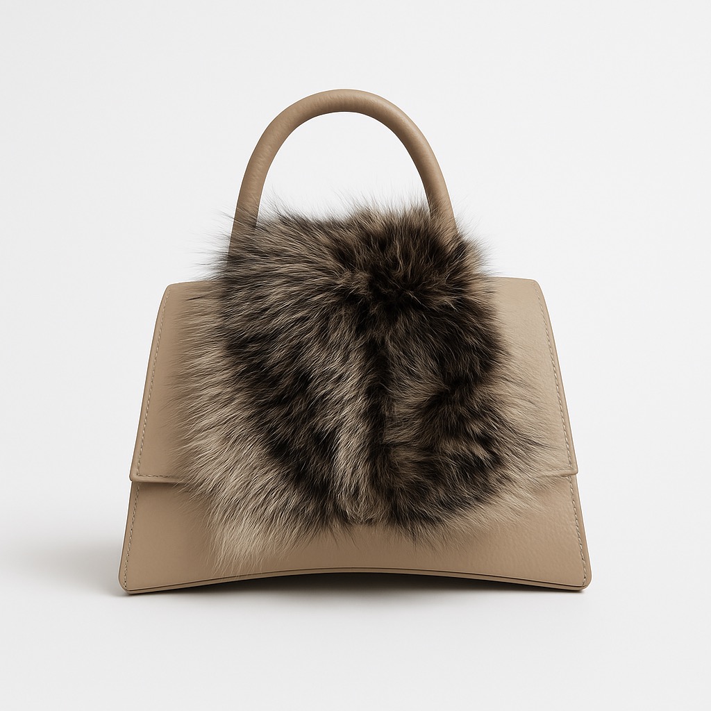 - Rigid leather bag with fur inserts.