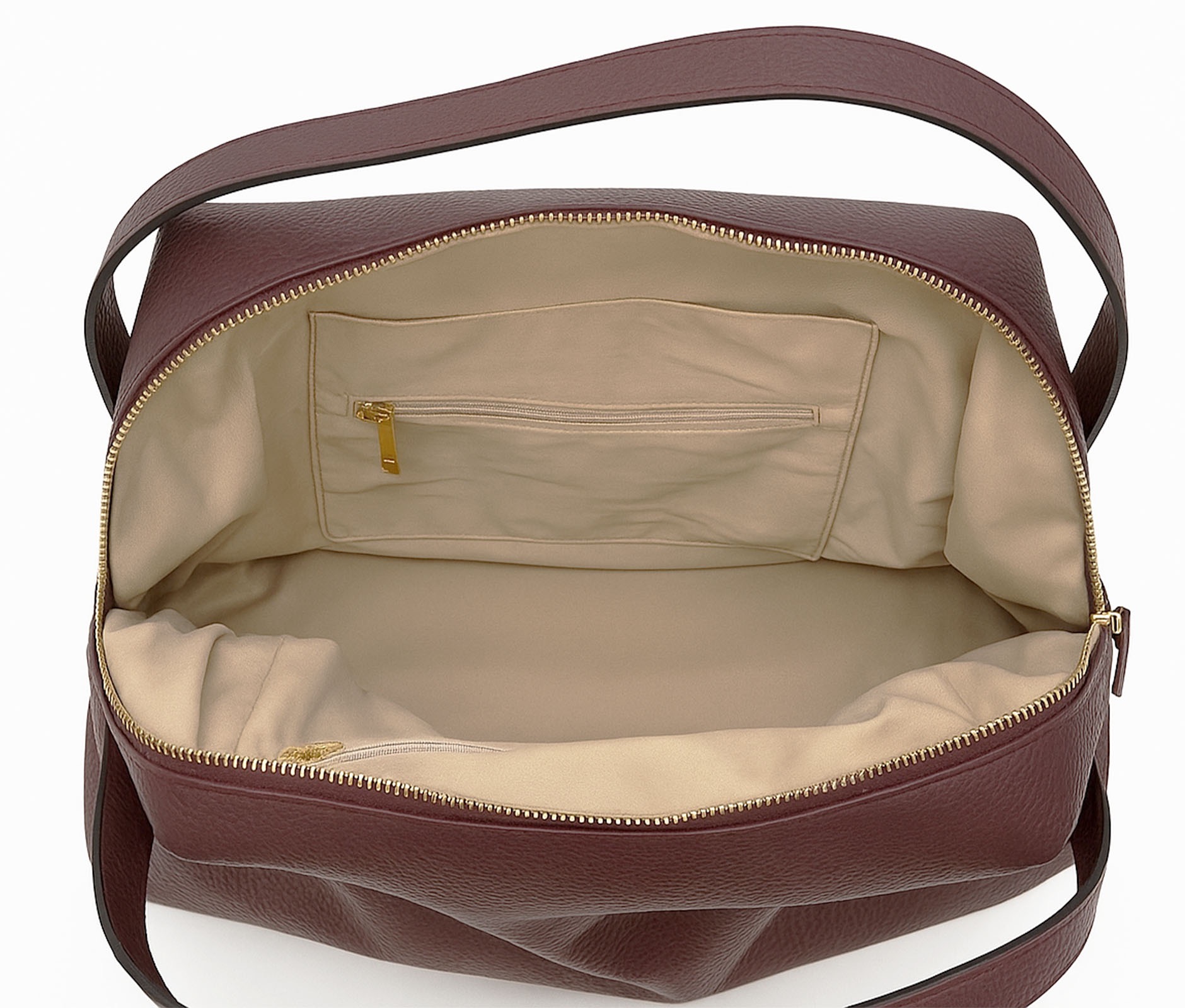 - Two fixed leather shoulder straps and one removable and adjustable shoulder strap.