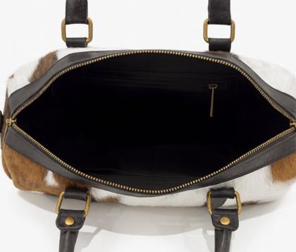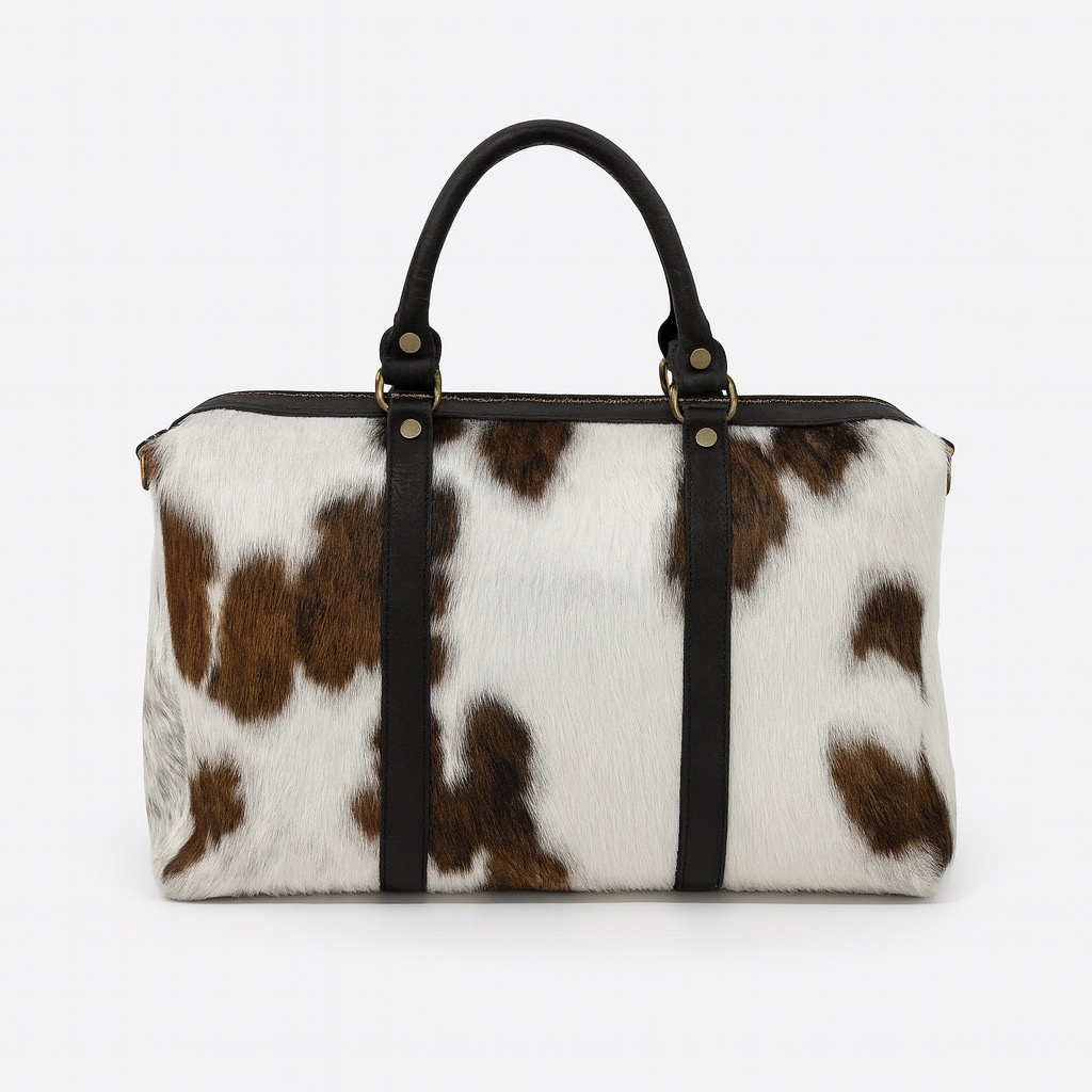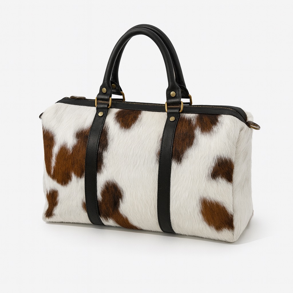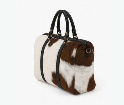 - Trunk-shaped bag in pony skin.