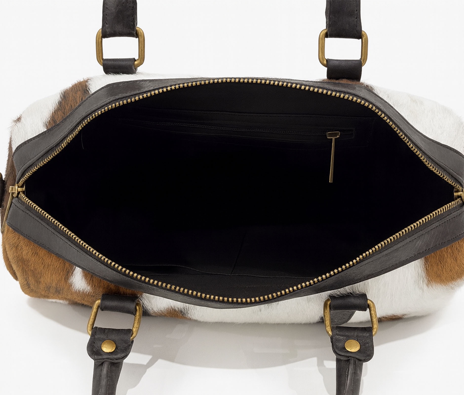 - Two fixed leather handles and a removable and extendable shoulder strap.