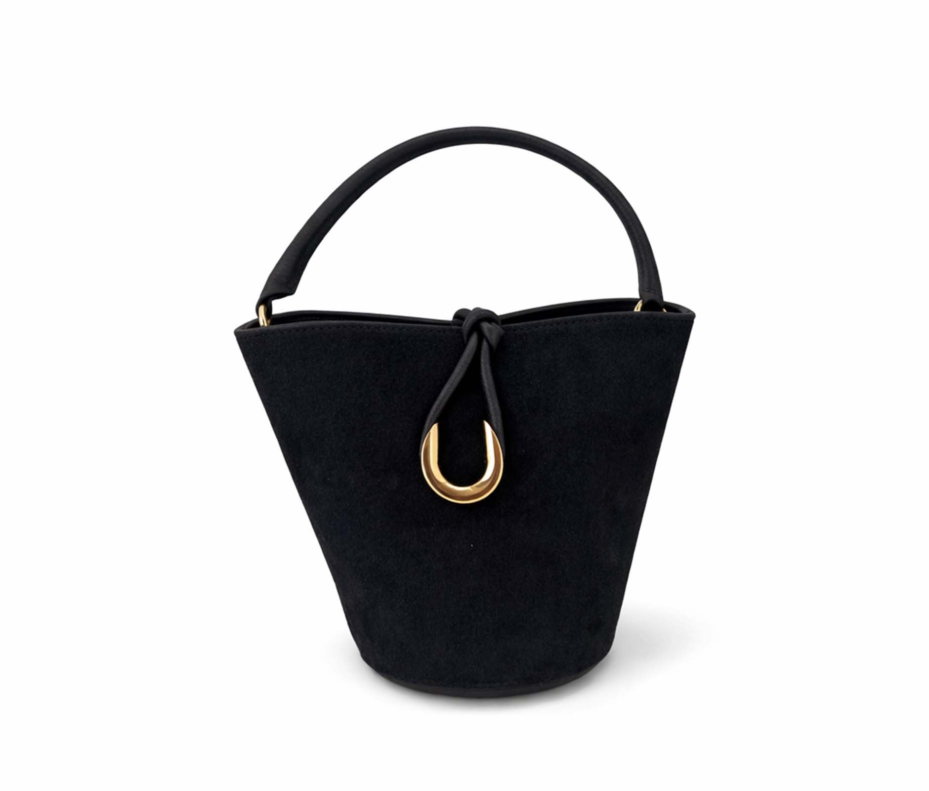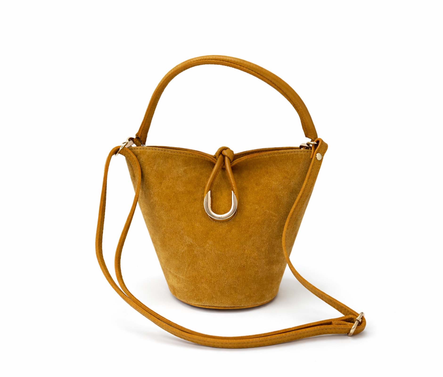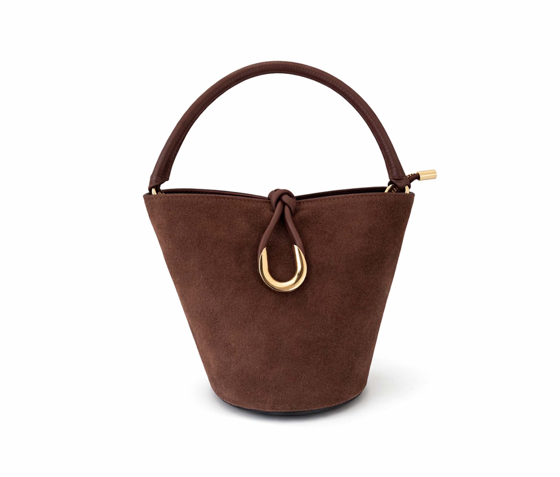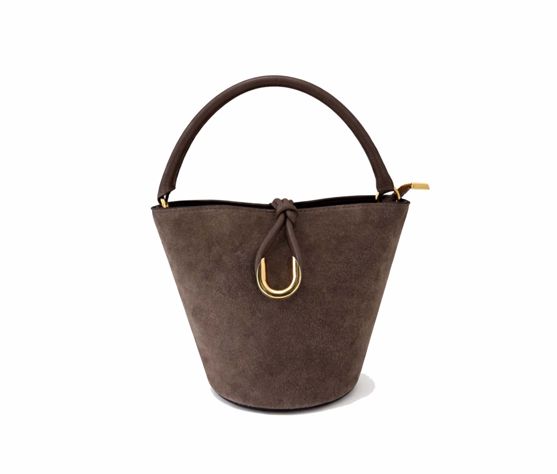 - Suede bucket bag.