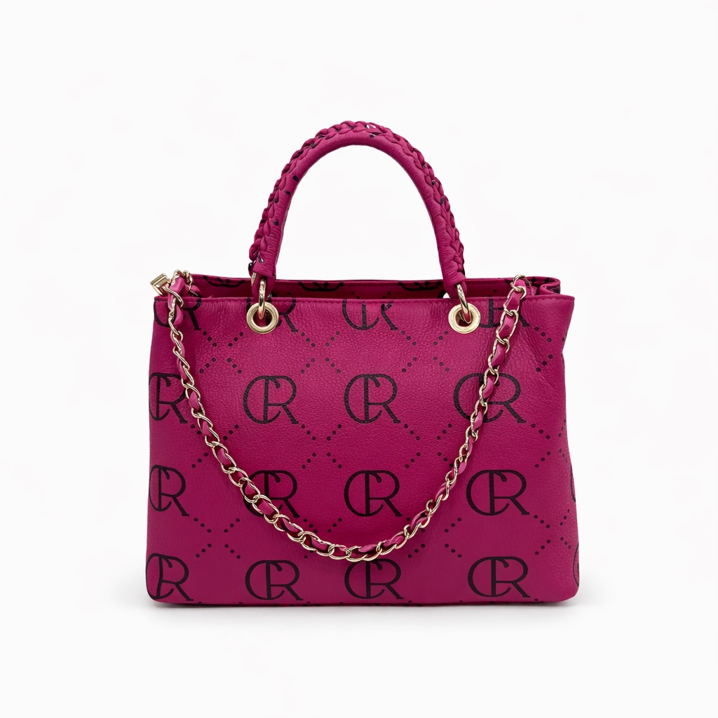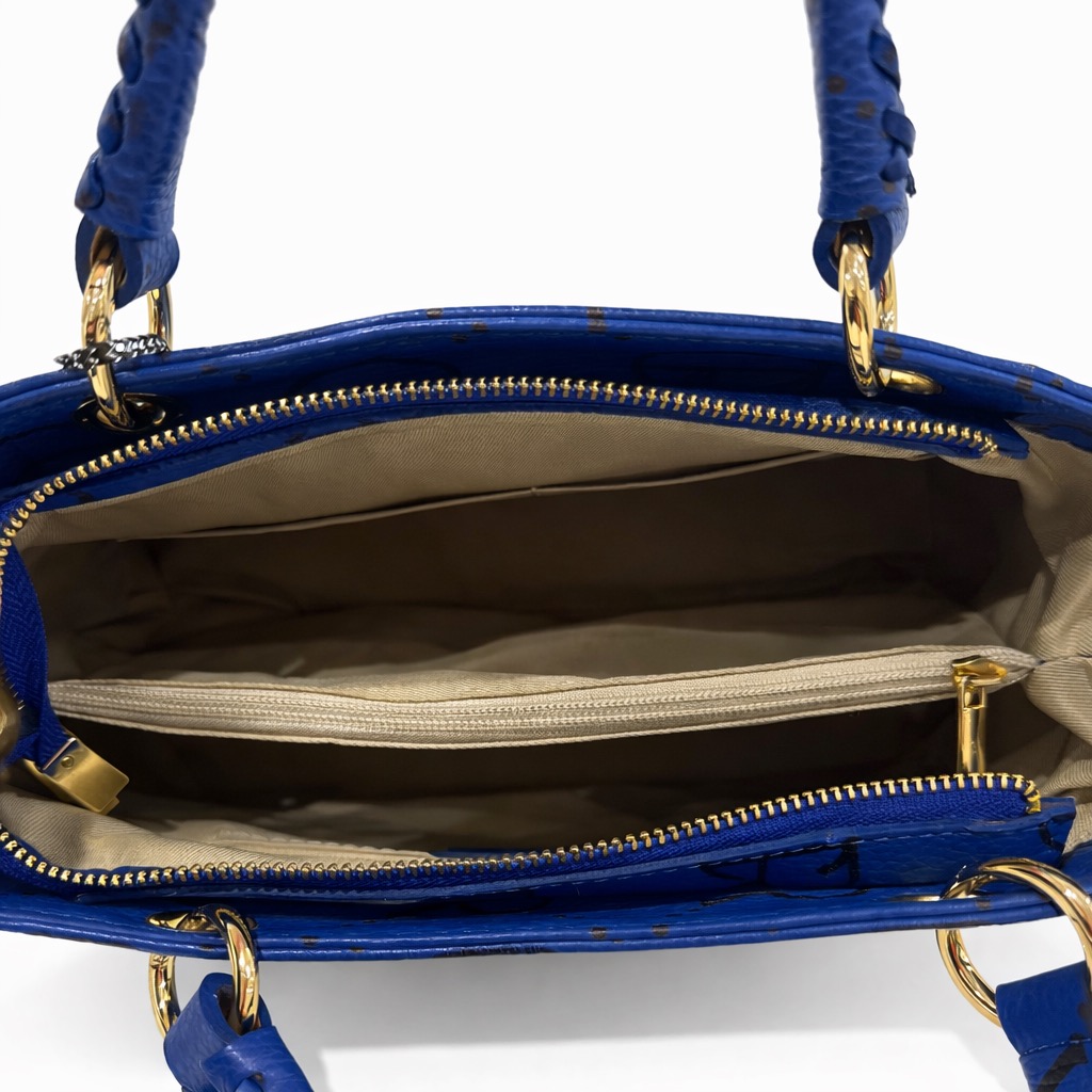 - Lined interior, organized with a central zip pocket that divides the space into two compartments.