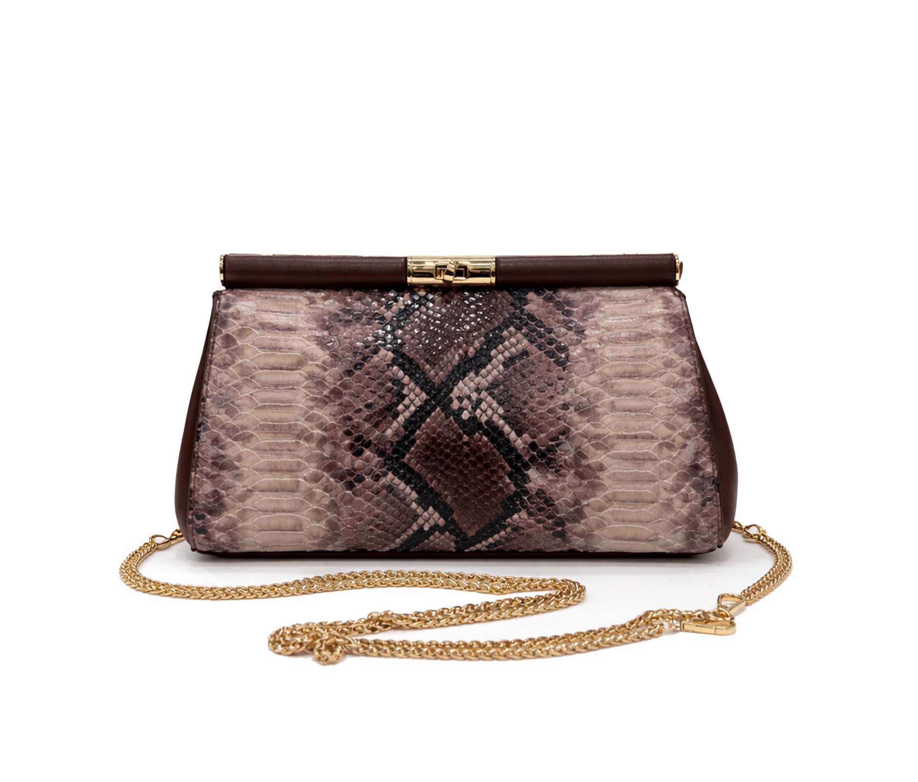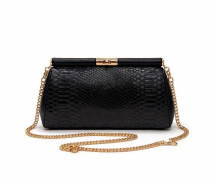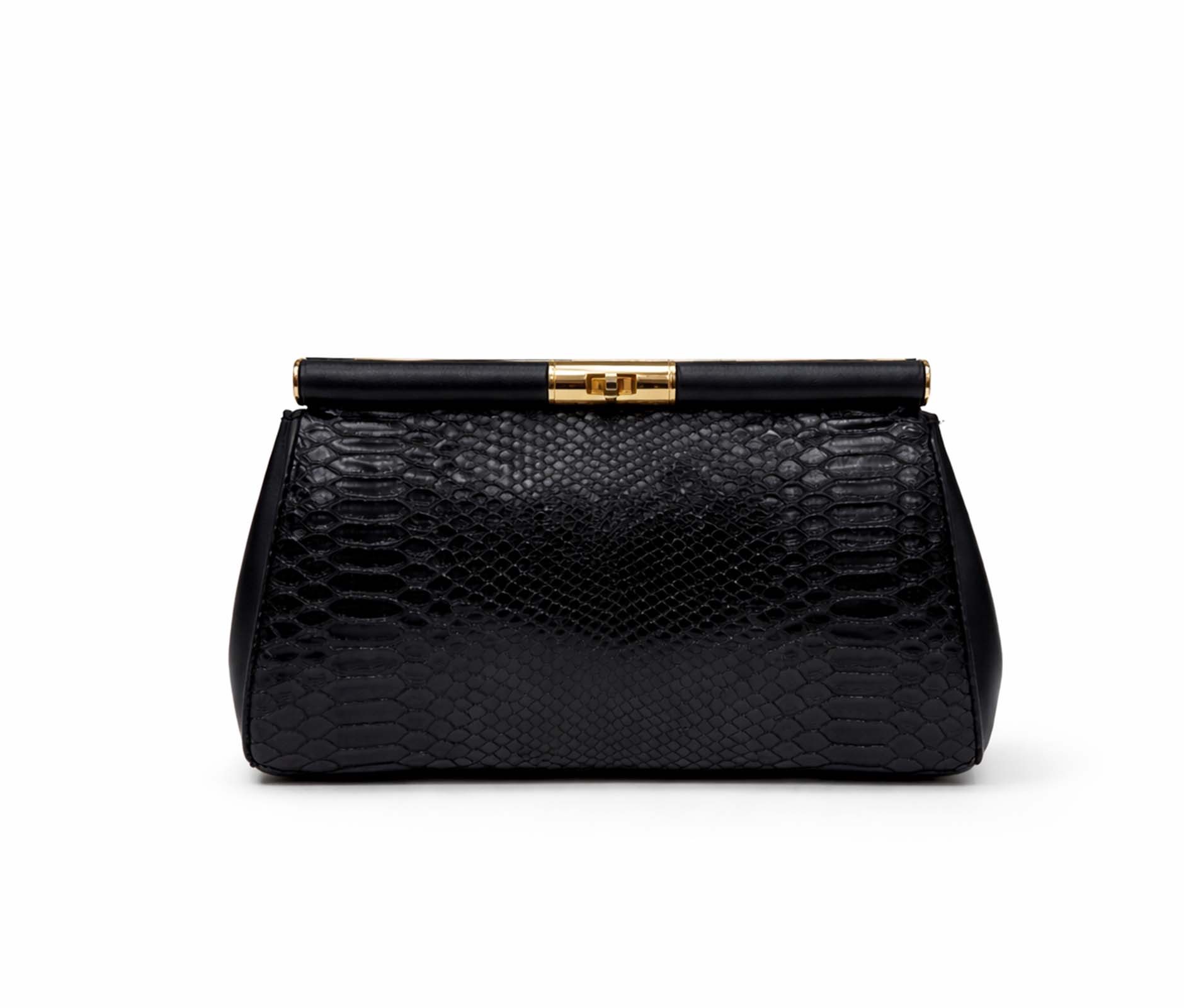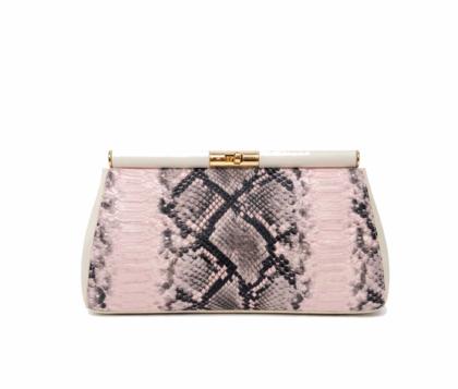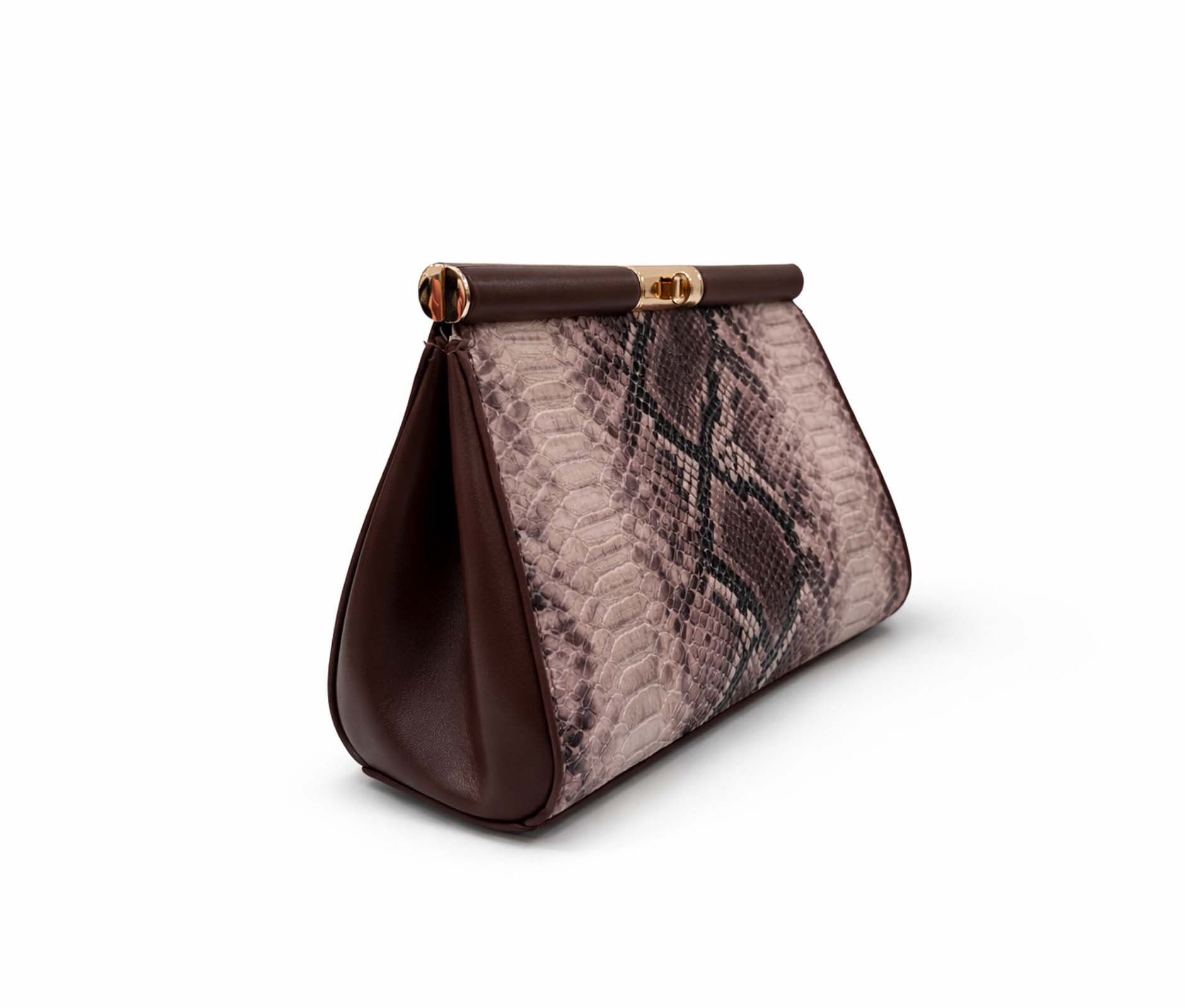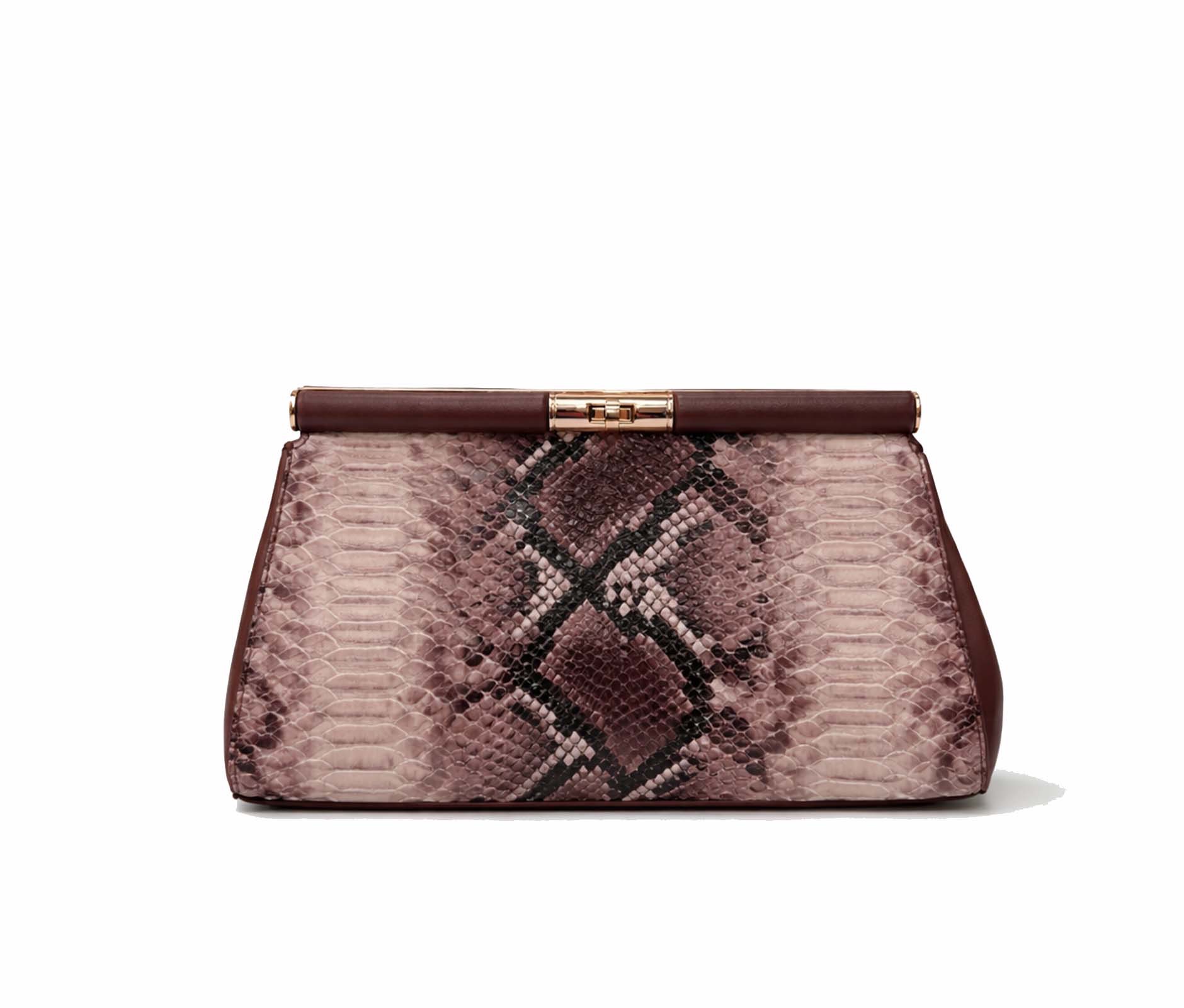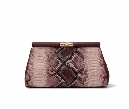 - Eco-leather clutch bag with python-effect print.
