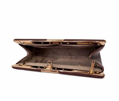 - Top closure with gold metal detail.