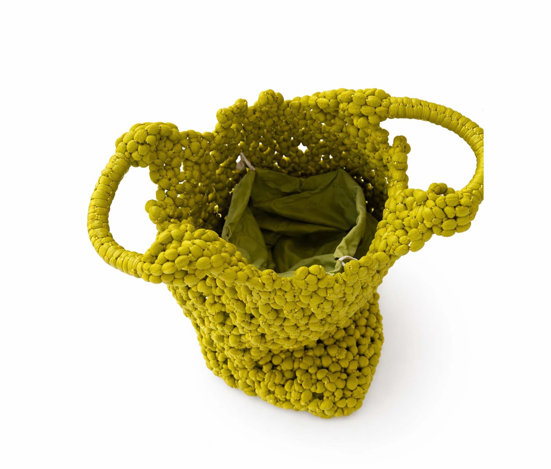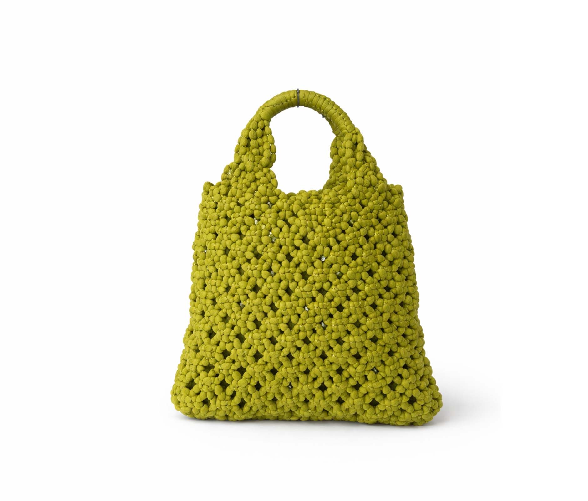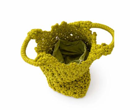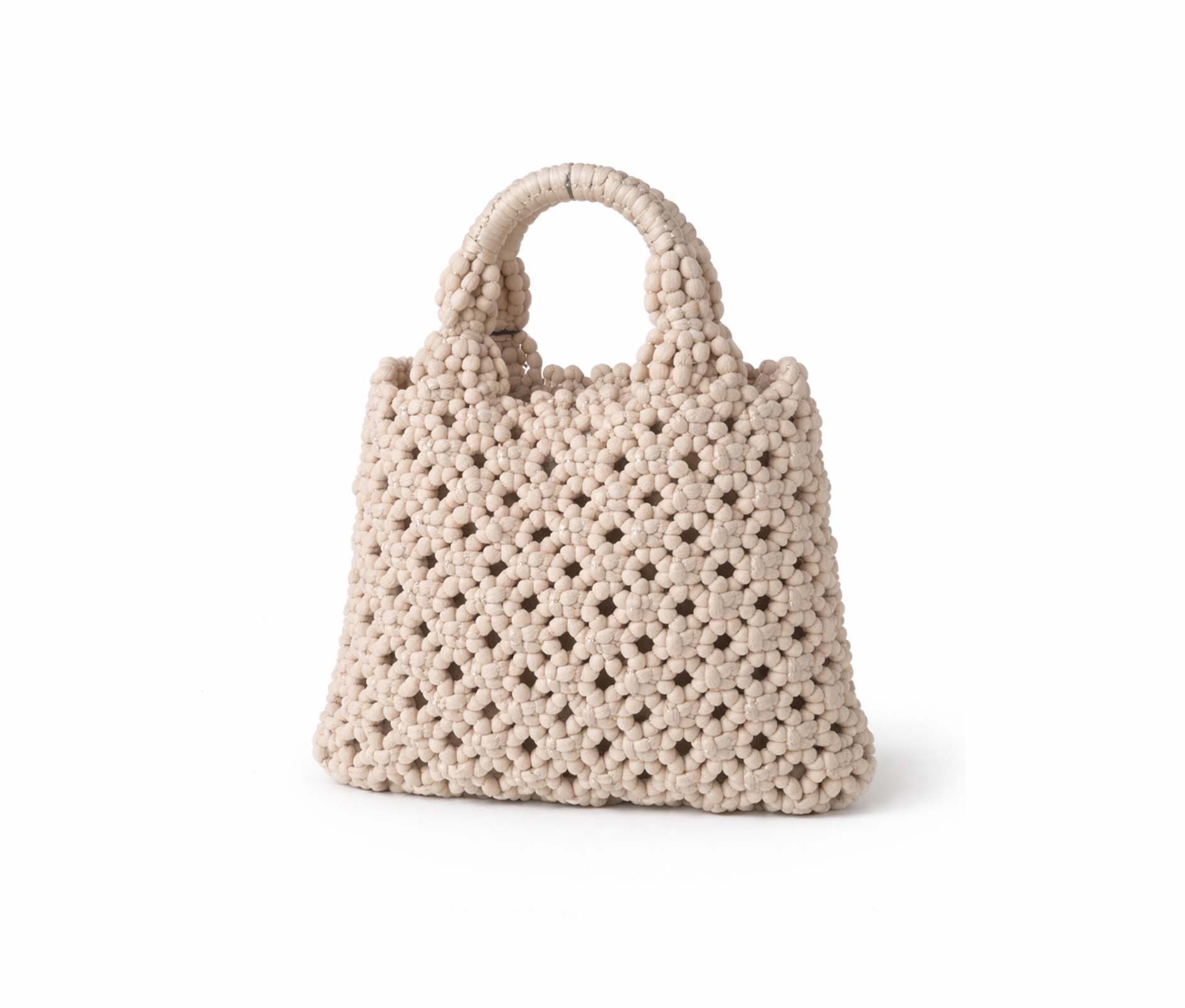 - Handbag in tightly woven fabric with small knots.