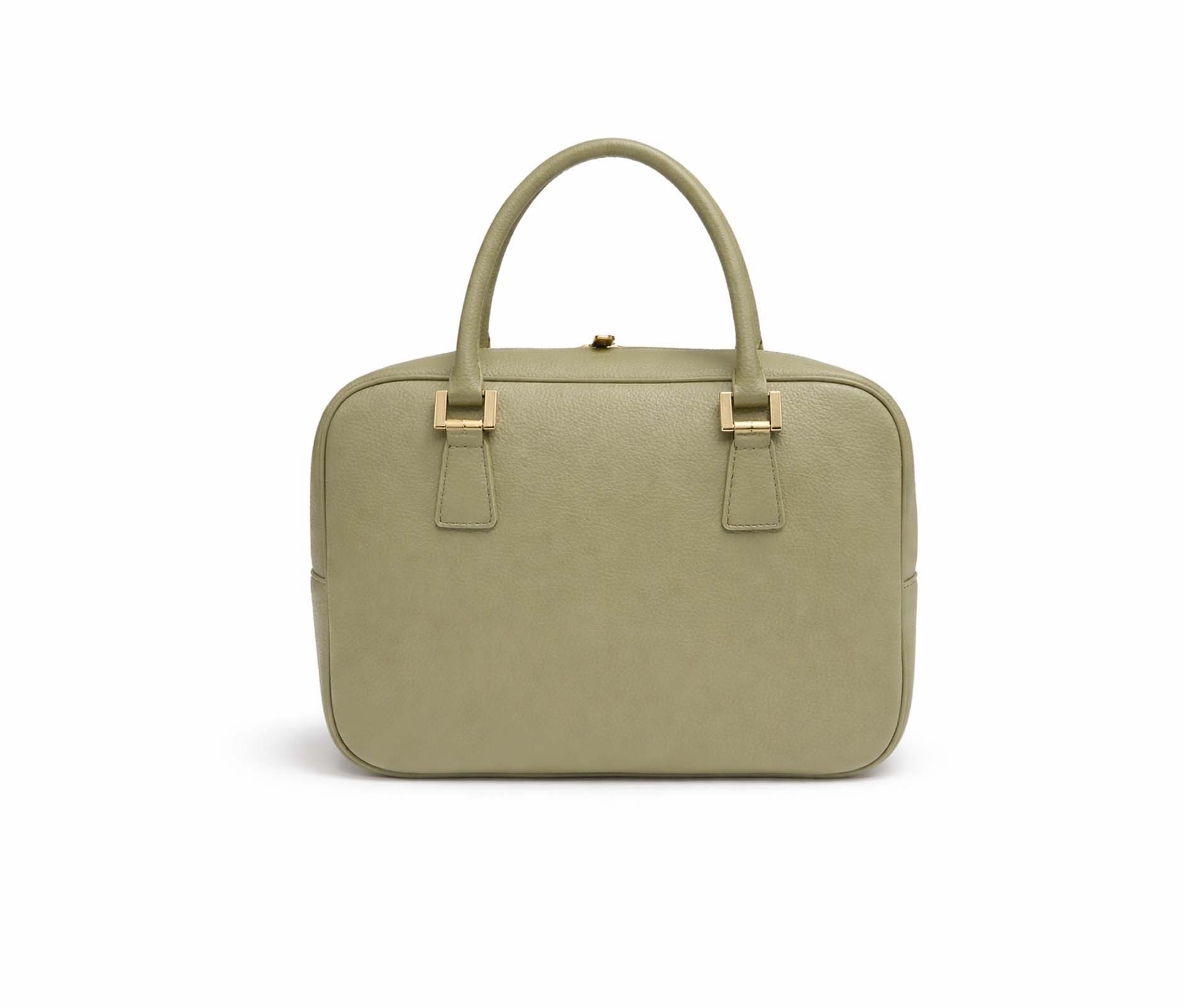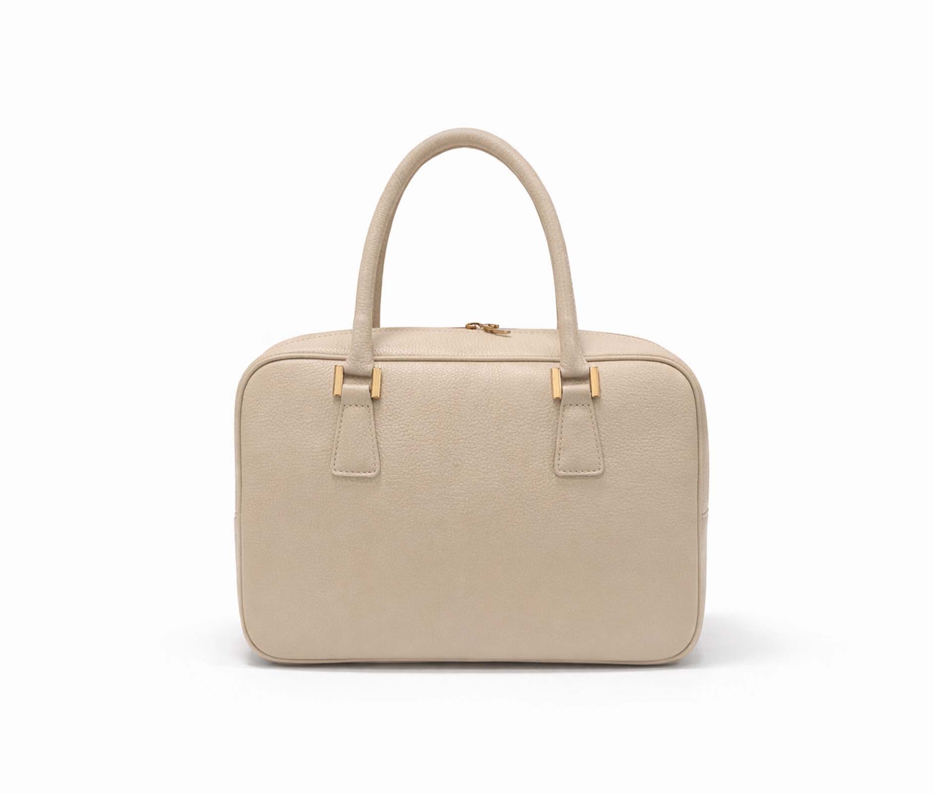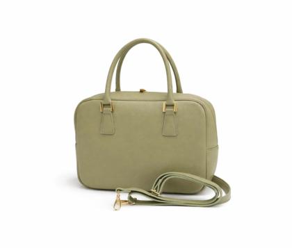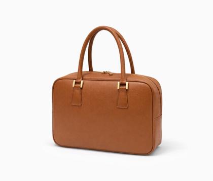 - Handbag with a rectangular shape and rounded corners.