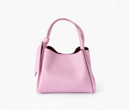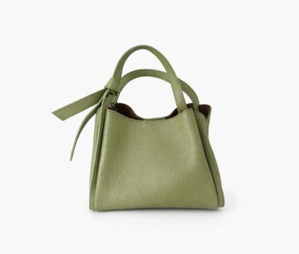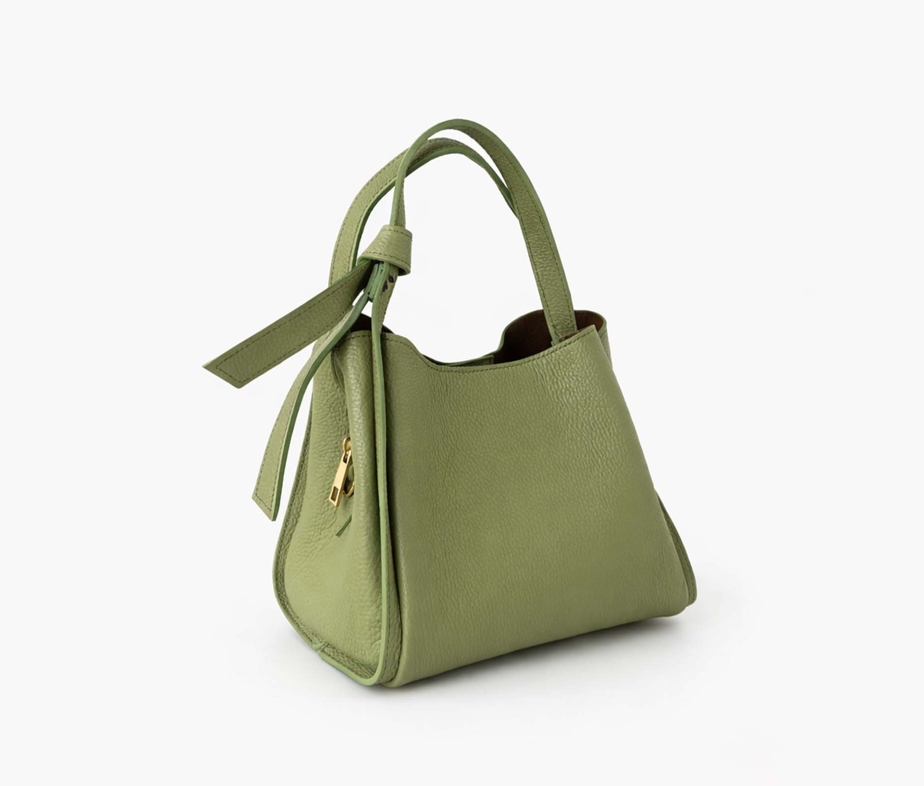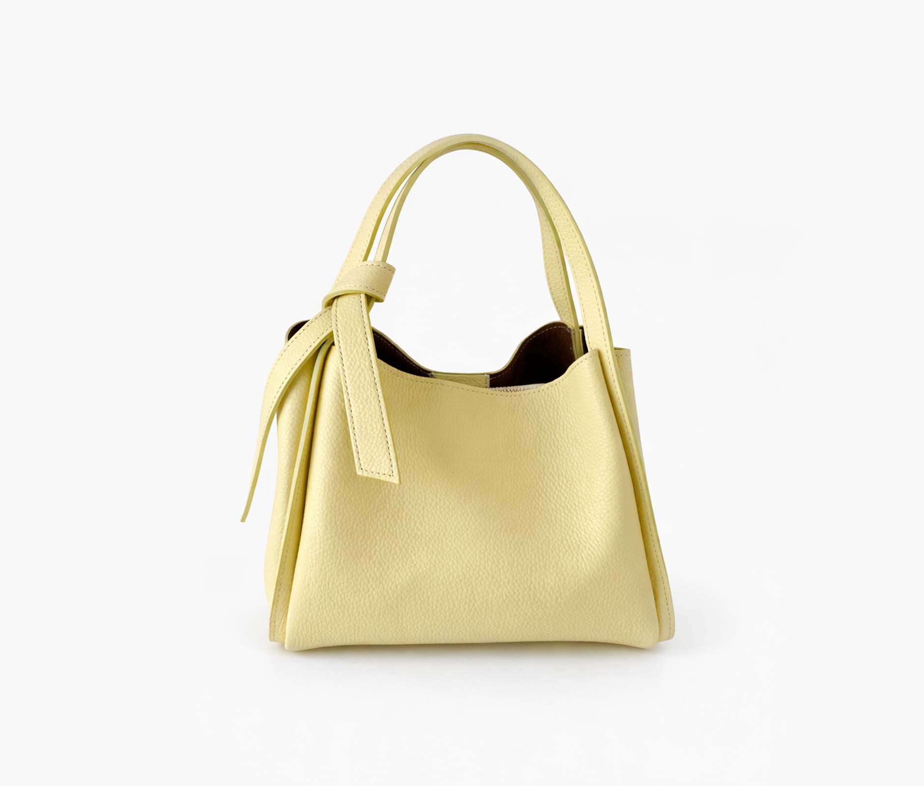 - Handbag with semi-rigid and compact trapezoid-shaped structure in hammered leather.